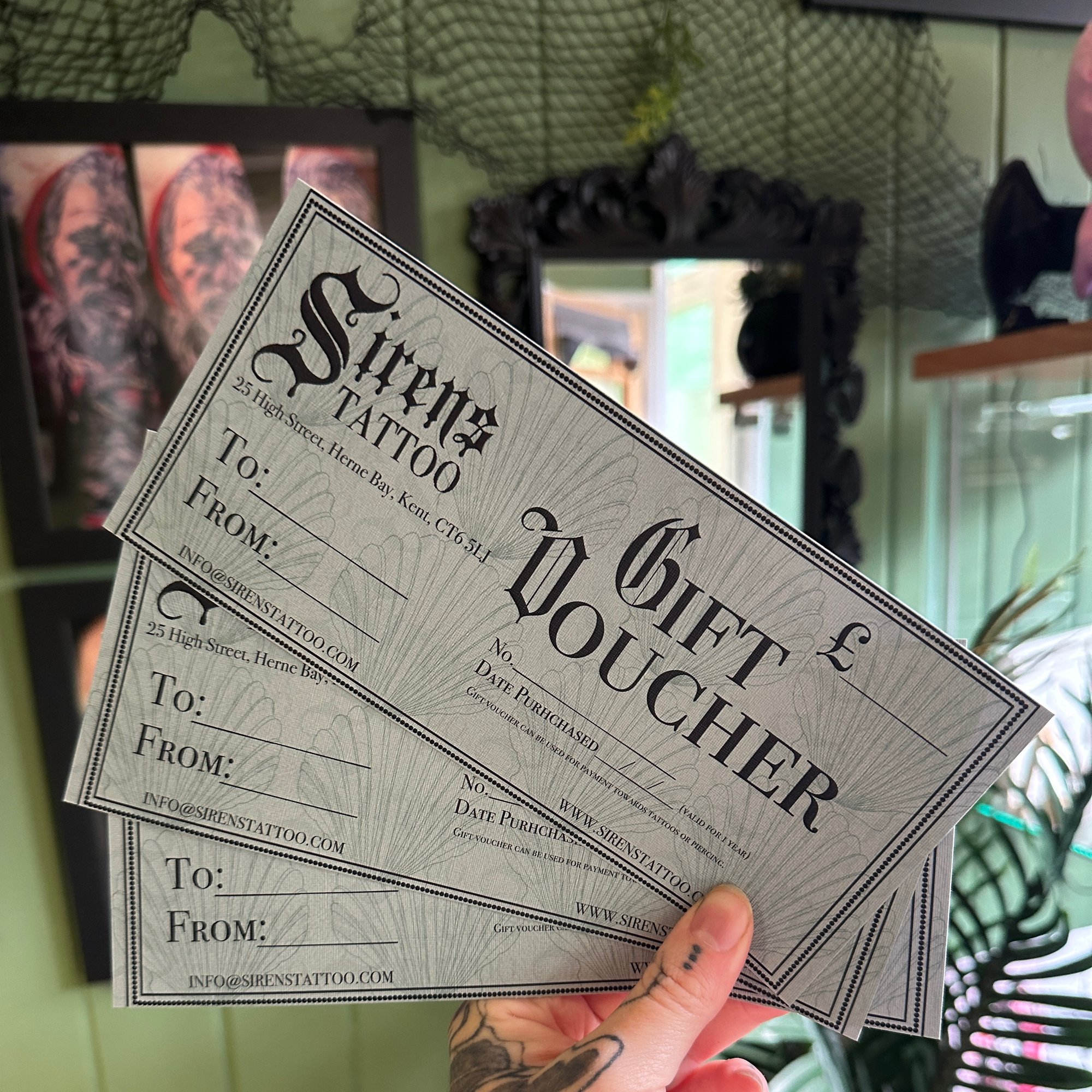 Giftcards CAN be used on tattoos or piercing appointments. Giftcards CANNOT be used to purchase jewellery.