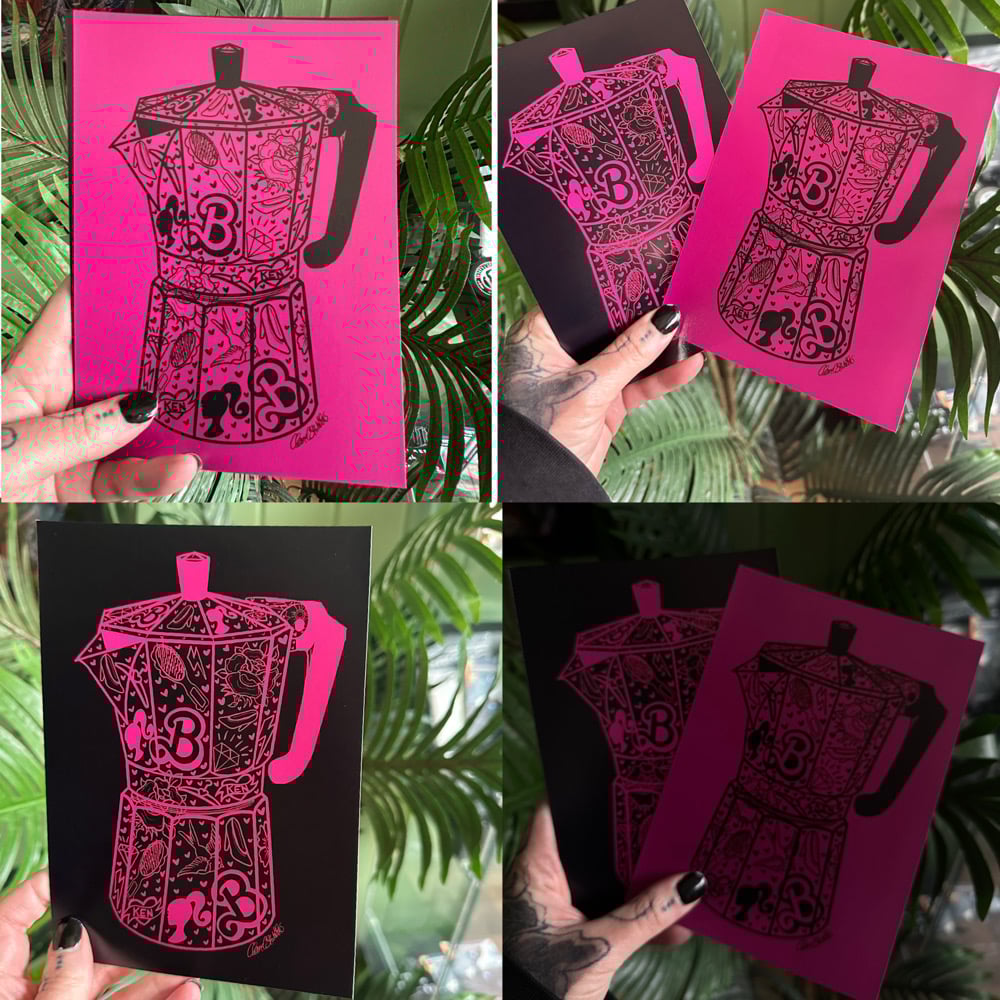 Please note. The Barbie Cafetière prints are smaller than A5, the rest are A5.
